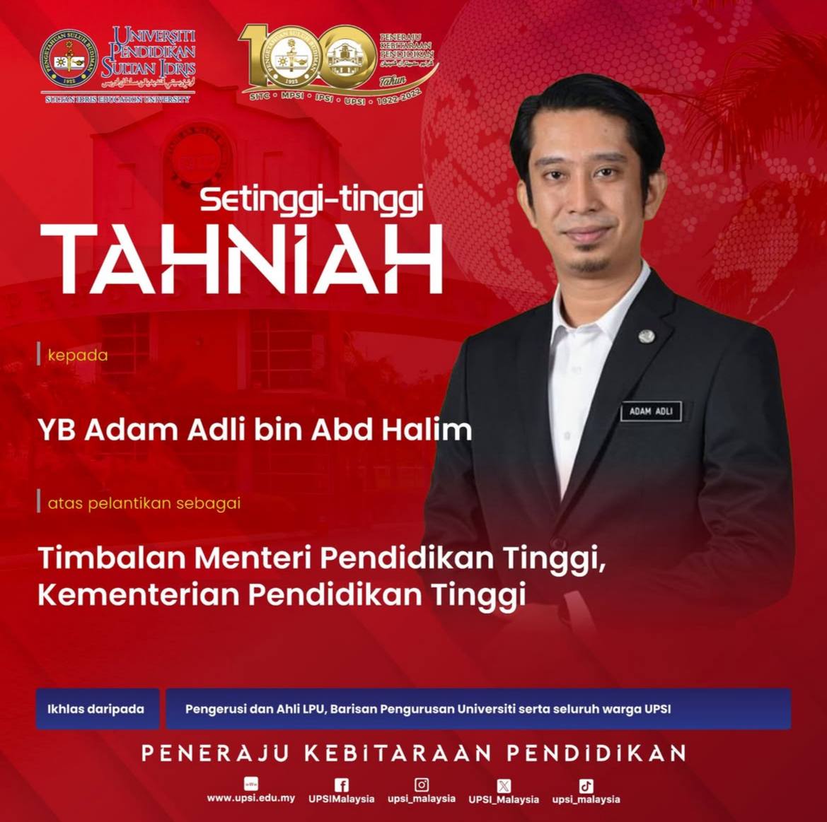 Dulu UPSI gantung Adam Adli, sekarang universiti sama ucap tahniah