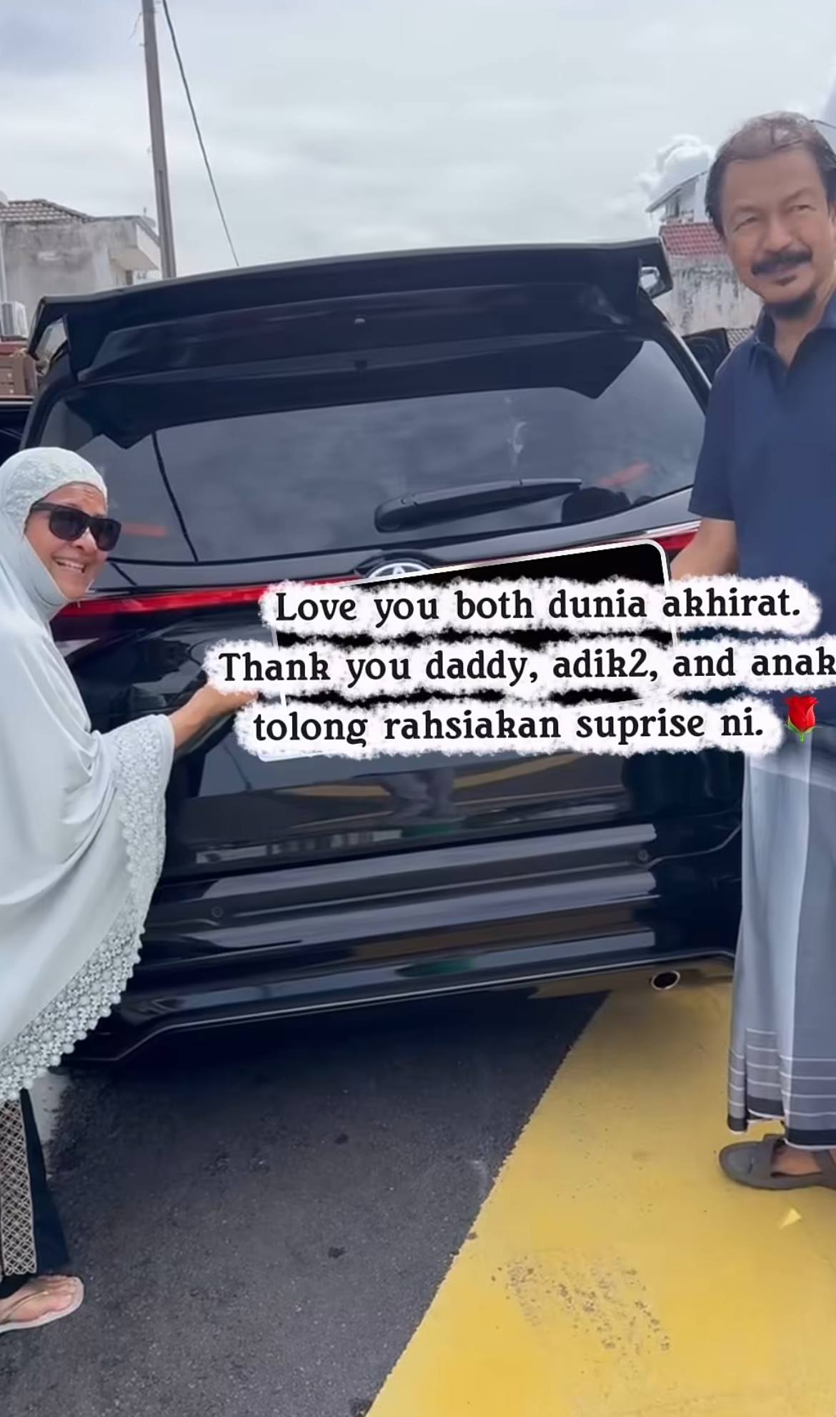 “Tiba-tiba ada satu kereta tak dikenali sampai depan rumah, mama ayah pelik sebab tak tahu kereta siapa,” tulis Amyra, semalam.