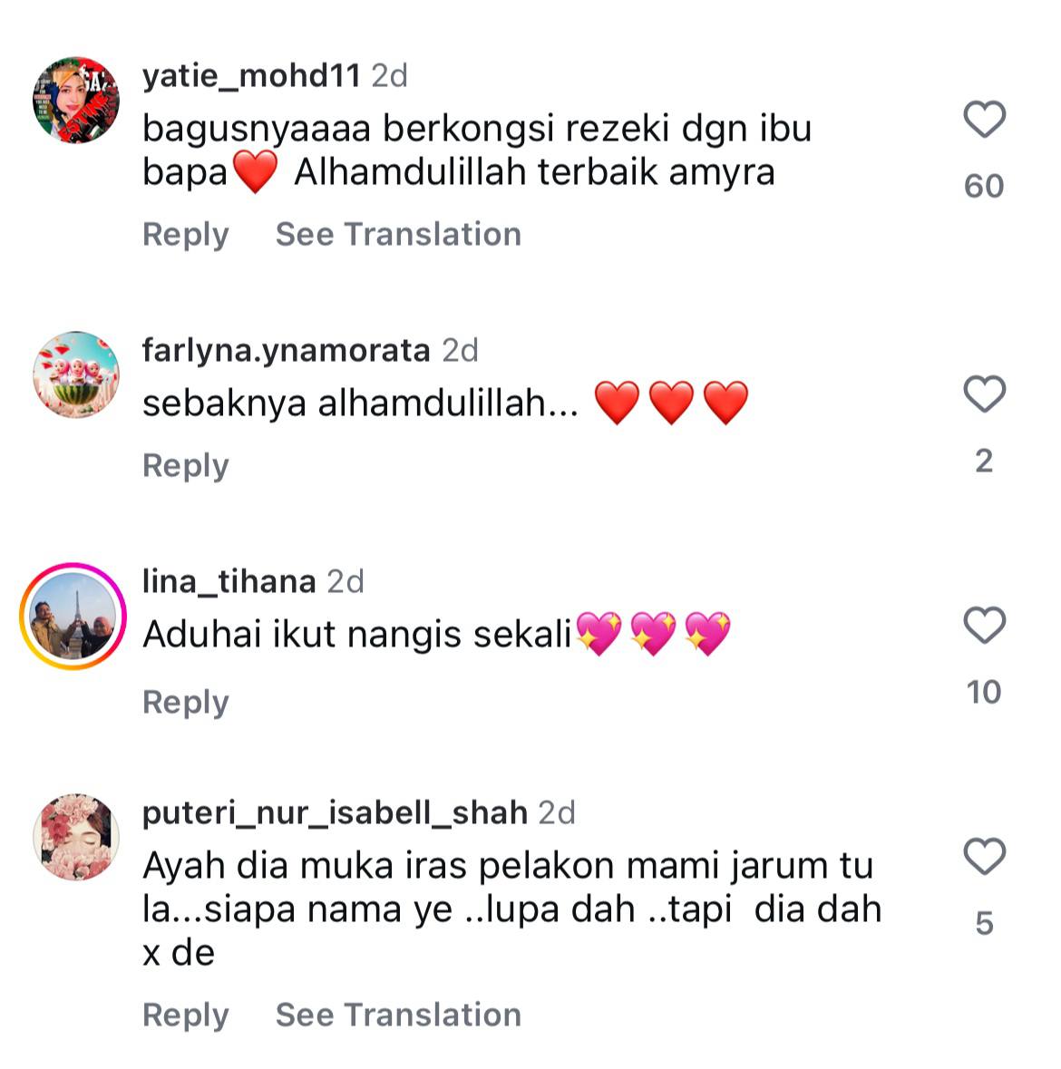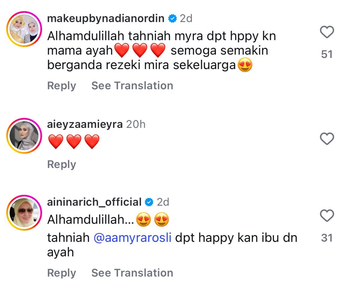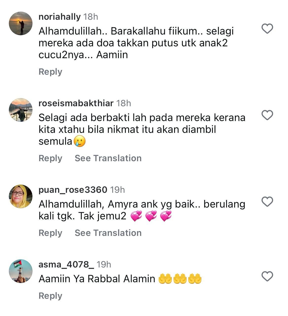 Malah ada juga yang meluahkan rasa gembira melihat momen indah itu dan mendoakan yang terbaik buat mereka sekeluarga.
