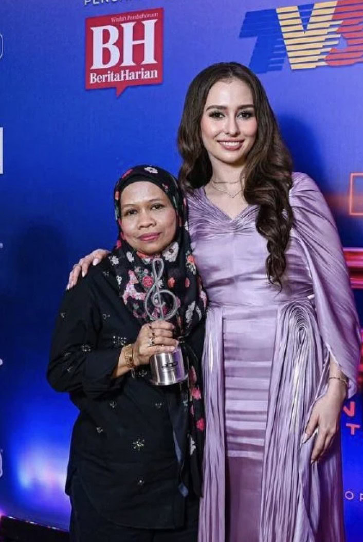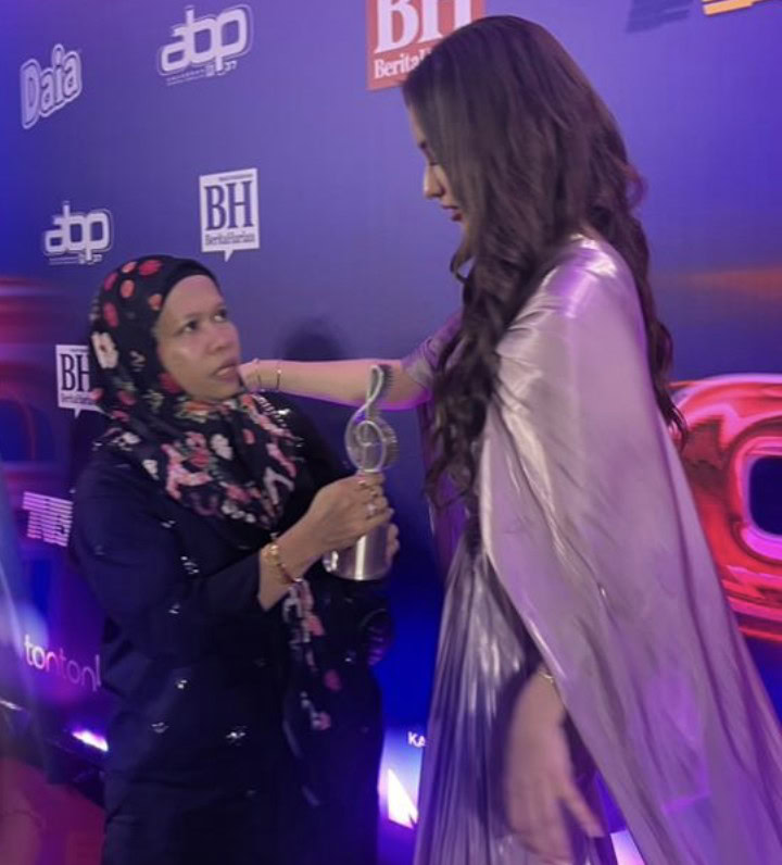 Pelukan spontan mereka di karpet merah, disusuli detik manis merakam foto bersama sambil memegang trofi, nyata mencuri perhatian tetamu dan peminat yang hadir.