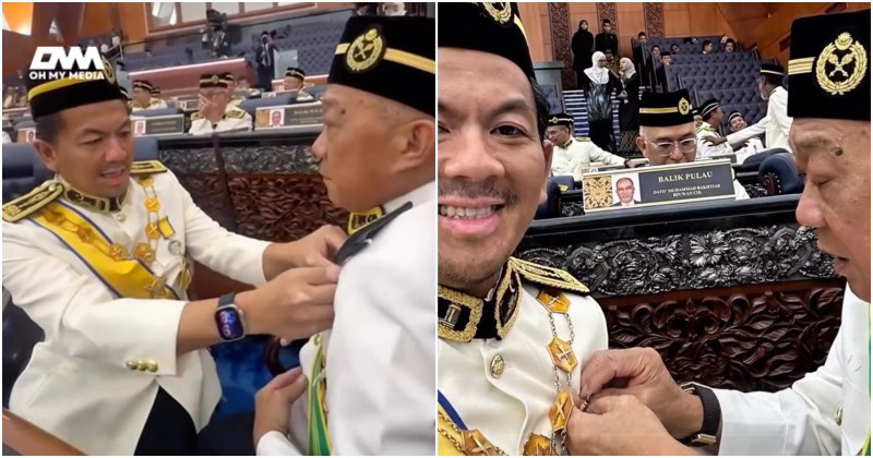 Video berdurasi 25 saat yang dikongsi memaparkan Bung Moktar sedang membetulkan pin Mohd Shahar.