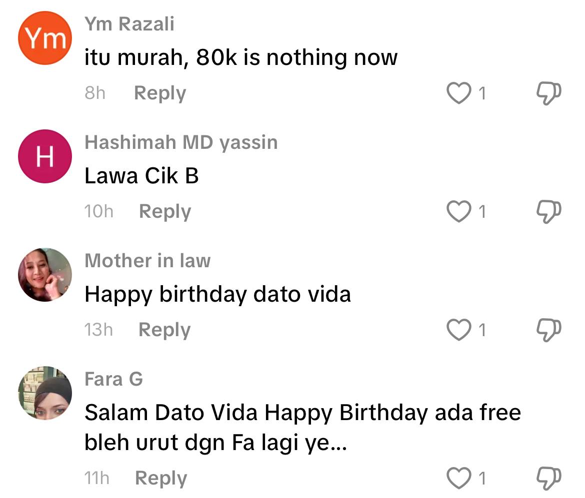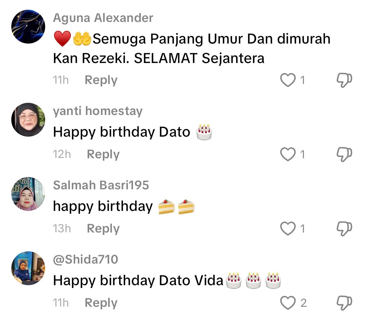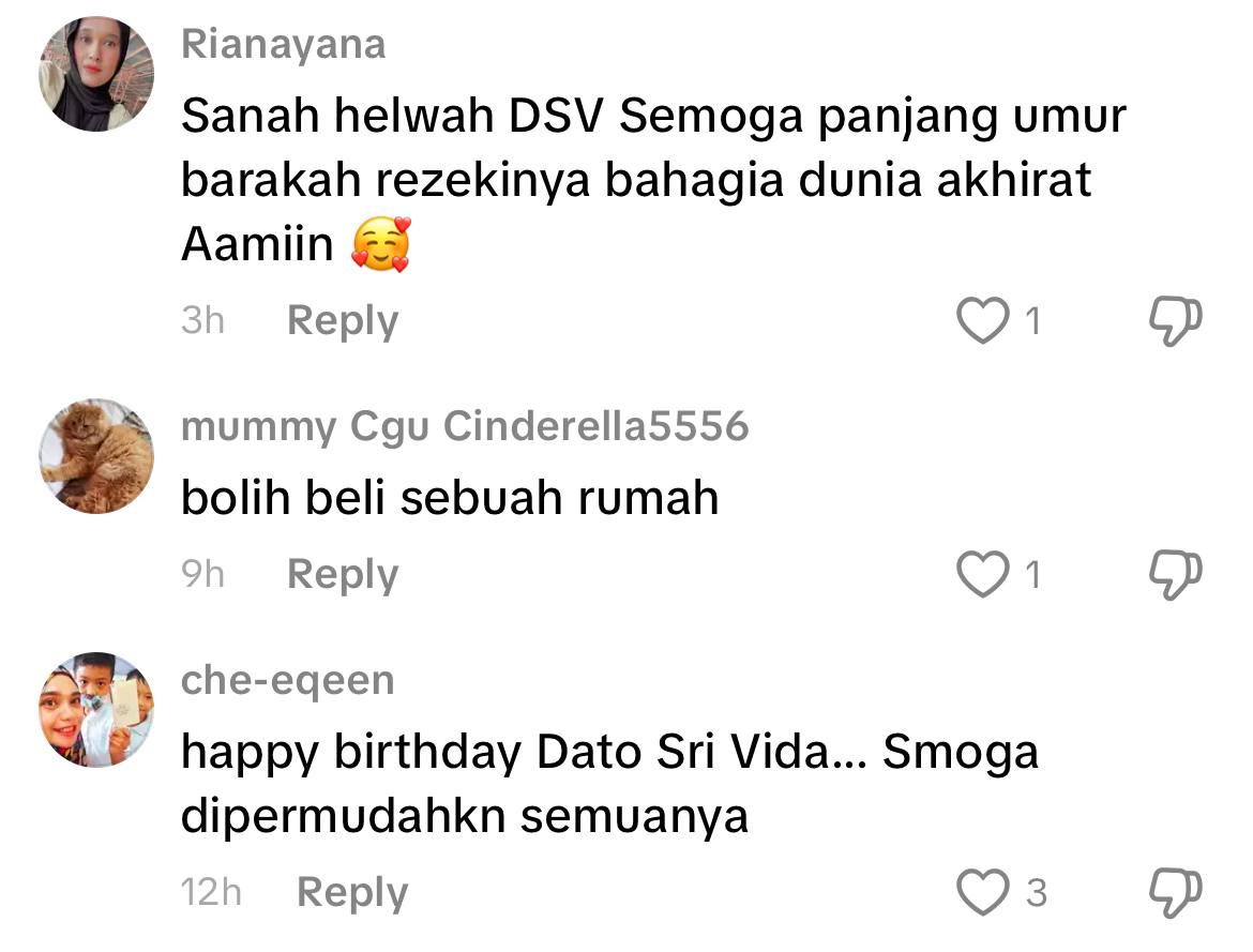 Menjengah ke ruangan komen, warganet memberikan ucapan istimewa buat Vida dan ada juga mendoakan agar usahawan itu terus diberi kesihatan yang baik serta rezeki berlipat ganda.