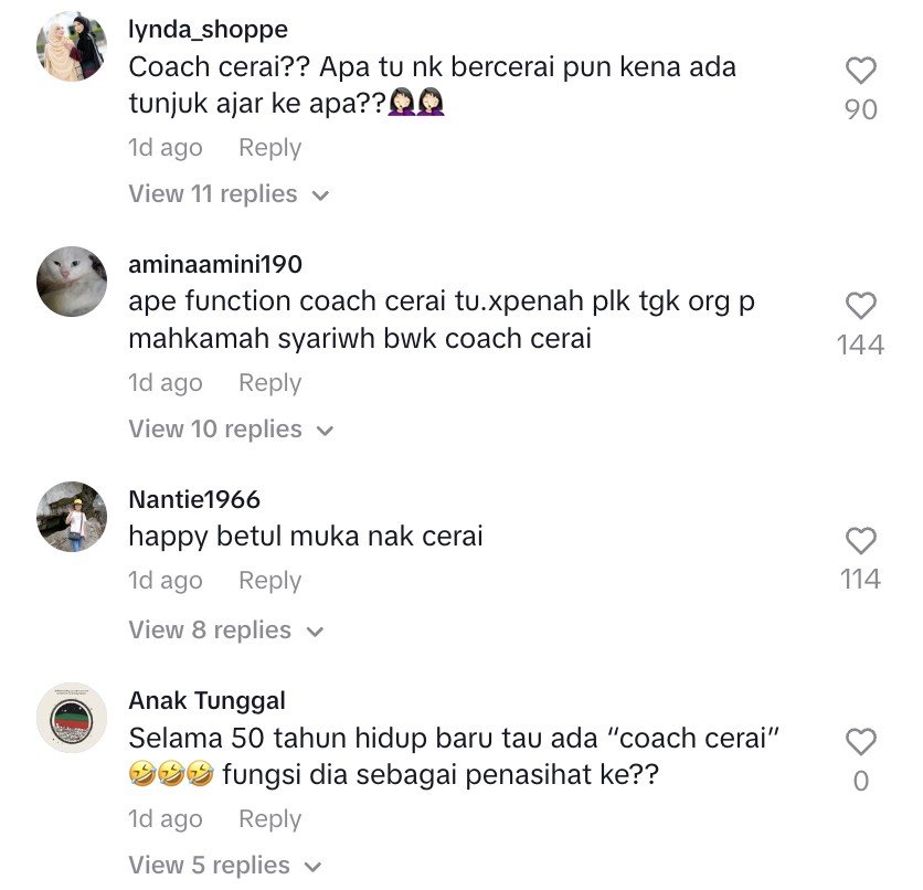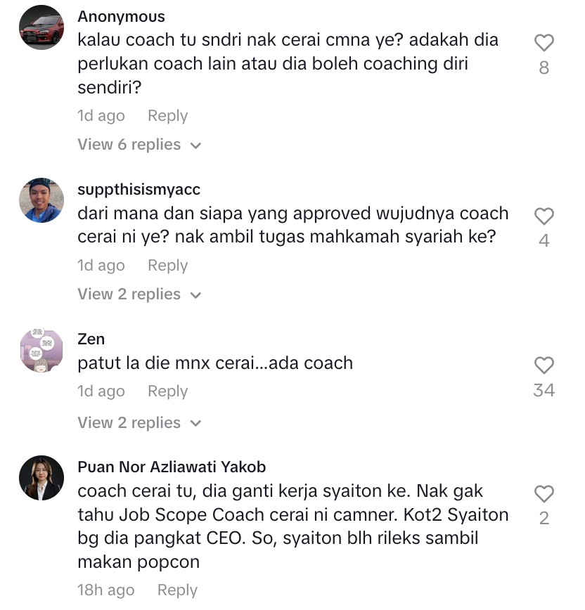 Kebanyakaan netizen masih tertanya-tanya mengenai ‘job scope’ Coach Cerai memandangkan ‘pekerjaan’ tersebut masih belum begitu terkenal di Malaysia.