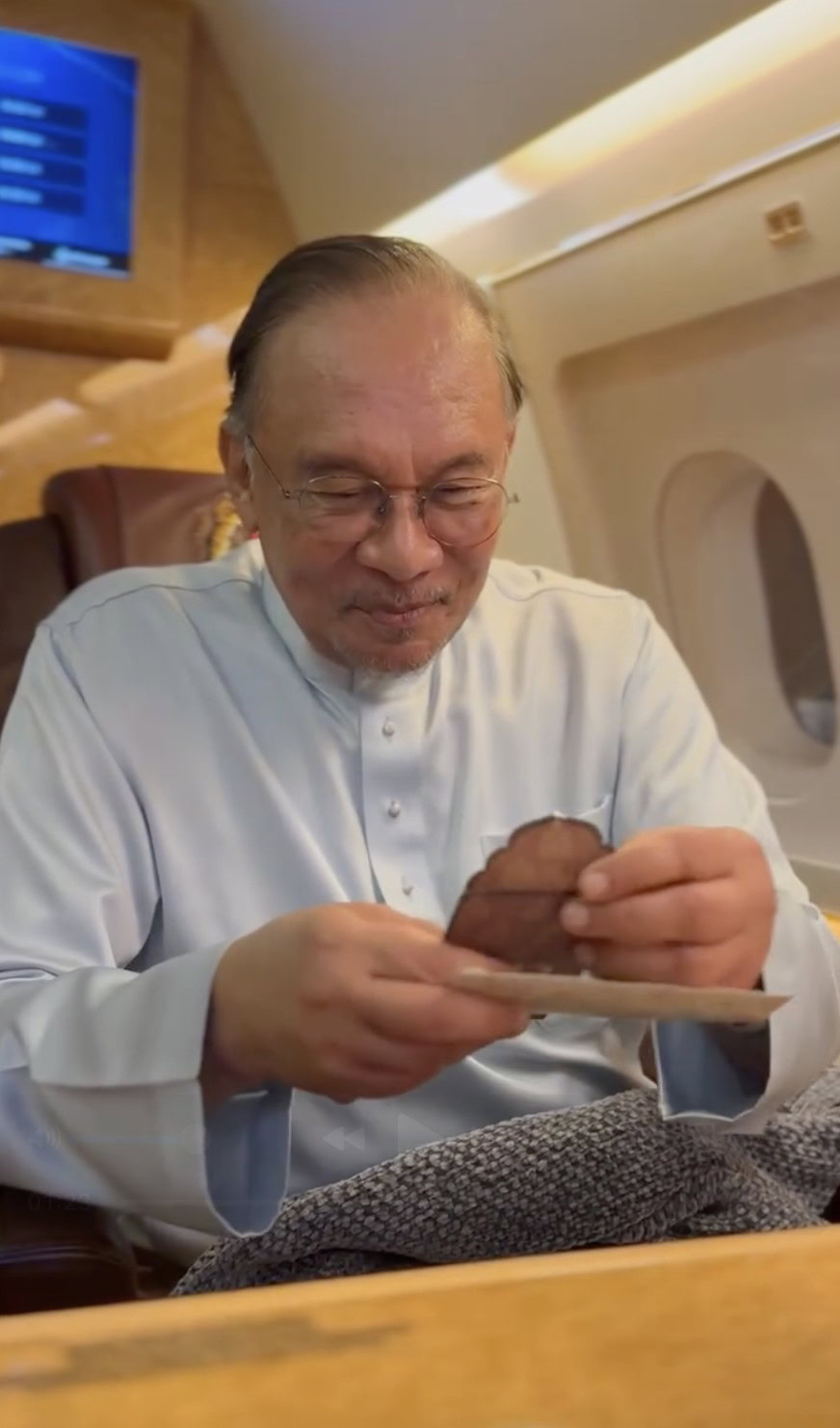 Perdana Menteri Malaysia, Datuk Seri Anwar Ibrahim tersentuh apabila menerima duit raya daripada kanak-kanak sewaktu dapat perjalanan pulang ke Kuala Lumpur.