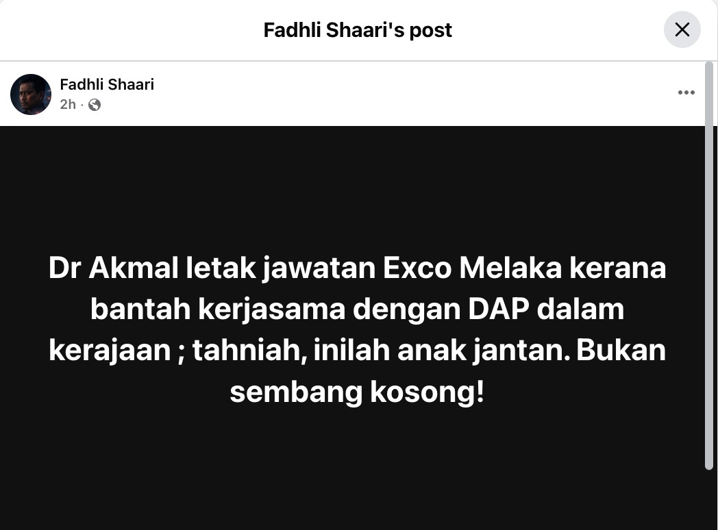 Artikel lain: Akmal Saleh umum letak jawatan Exco Melaka – “Saya akan lawan DAP habis-habisan!”