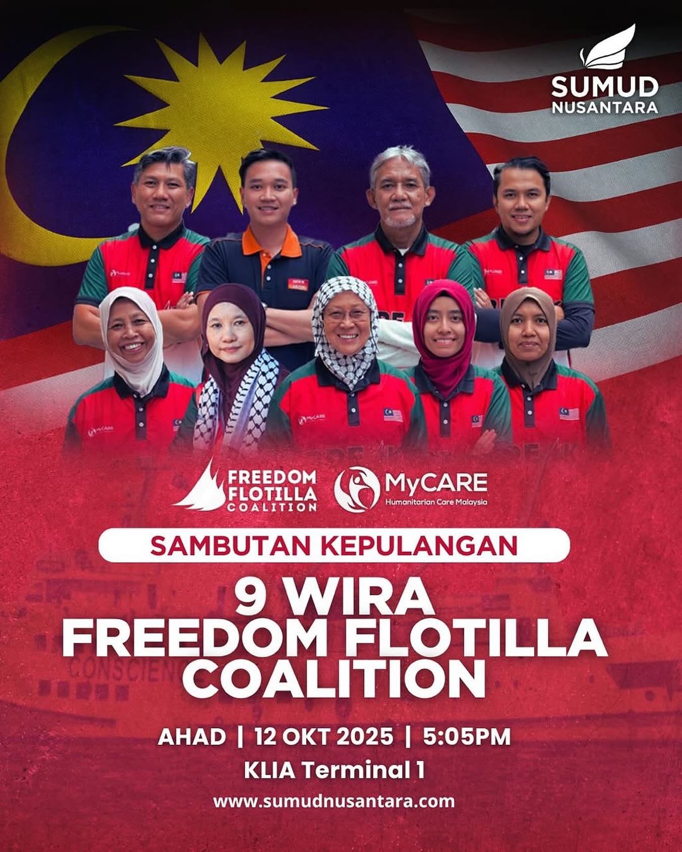 Sebelum ini, Heliza antara 23 sukarelawan Malaysia yang menyertai misi kemanusiaan Global Sumud Flotilla bagi memecahkan sekatan dibuat rejim terhadap Palestin.