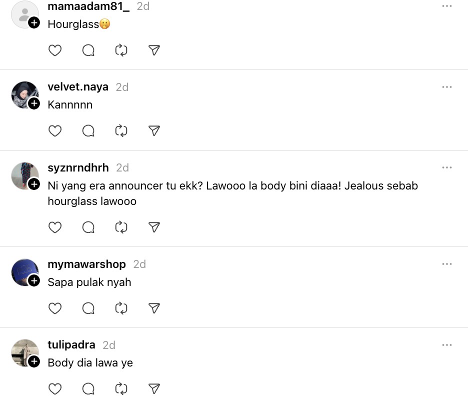 Kenyataan tersebut telah disokong netizen lain yang menyatakan penampilan sebegitu bukan ‘berisi’ tetapi ‘hourglass’, merujuk kepada pinggang dan perut yang ramping.