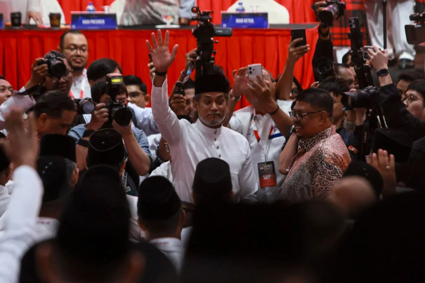 Beliau mengiringi Ketua Pemuda UMNO, Datuk Dr Muhamad Akmal Saleh, memasuki Dewan Merdeka, Pusat Dagangan Dunia Kuala Lumpur (WTCKL) bagi menghadiri persidangan sayap parti itu.