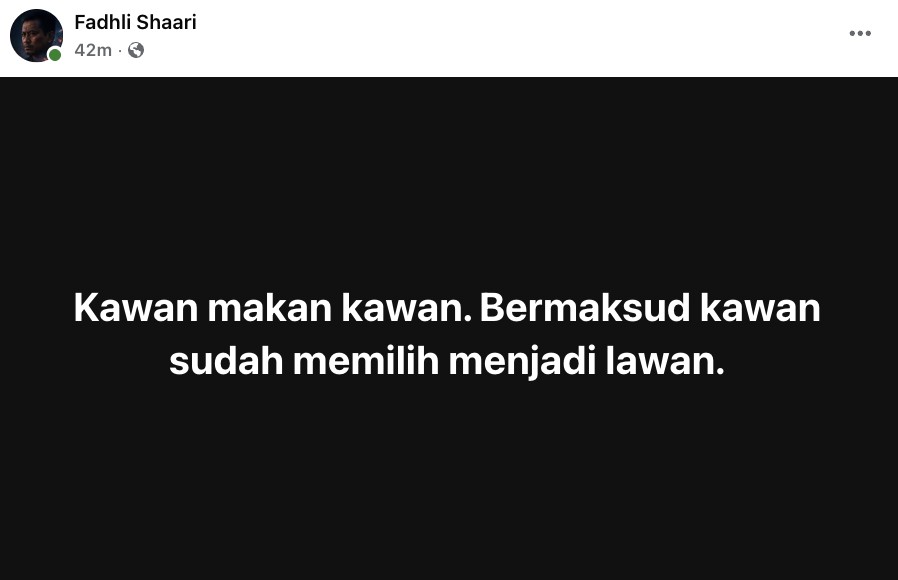 “Kawan makan kawan. Bermaksud kawan sudah memilih menjadi lawan” -Fadhli Shaari