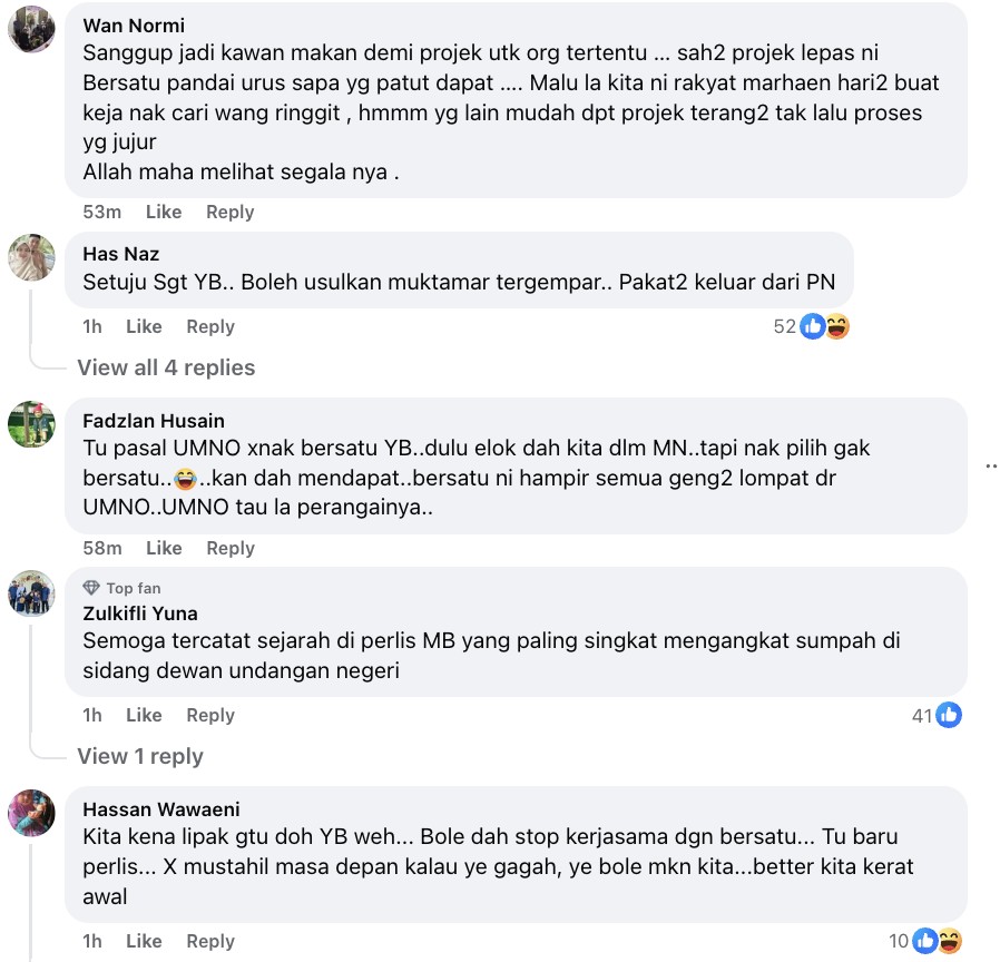 Menjengah ke ruangan komen, ramai yang menganggap hantaran tersebut ditujukan kepada parti yang diwakili Menteri Besar Perlis yang baharu walaupun tidak dinyatakan secara khusus oleh Fadhli.