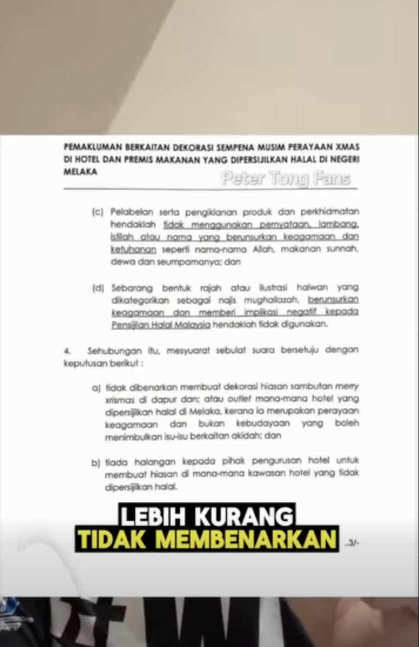 Sebelum ini, tular surat pekeliling JAIM yang menyatakan larangan pemasangan hiasan Krismas di premis hotel atau cawangan di Melaka yang mempunyai sijil halal, memandangkan Krismas dianggap sebagai sambutan keagamaan dan bukan kebudayaan, serta boleh “menimbulkan isu berkaitan akidah”.