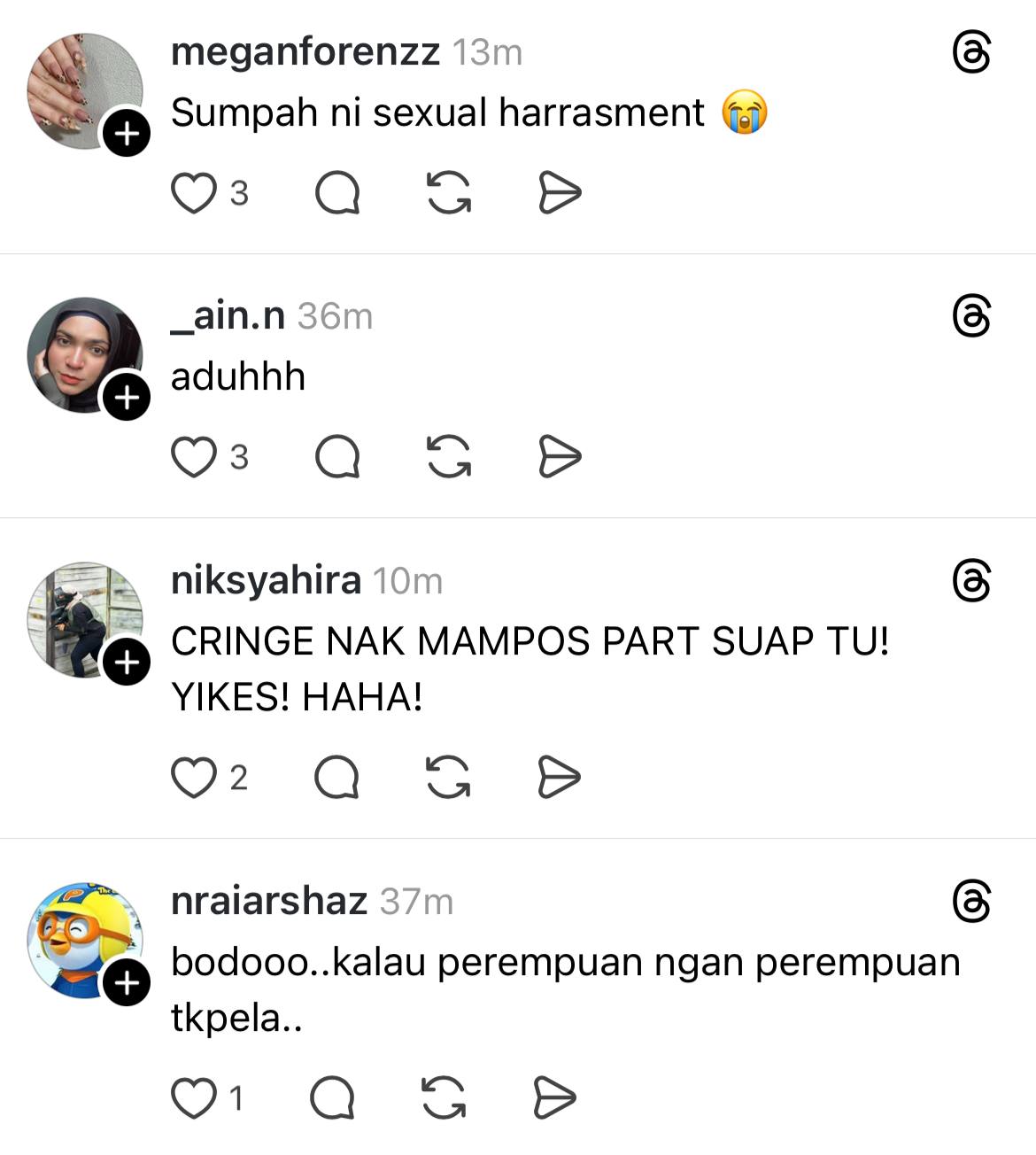 Meninjau ke ruangan komen, wargamaya meluahkan rasa kurang senang dengan kata-kata Aliff dan menganggap perkara tersebut umpama satu bentuk gangguan seksual.