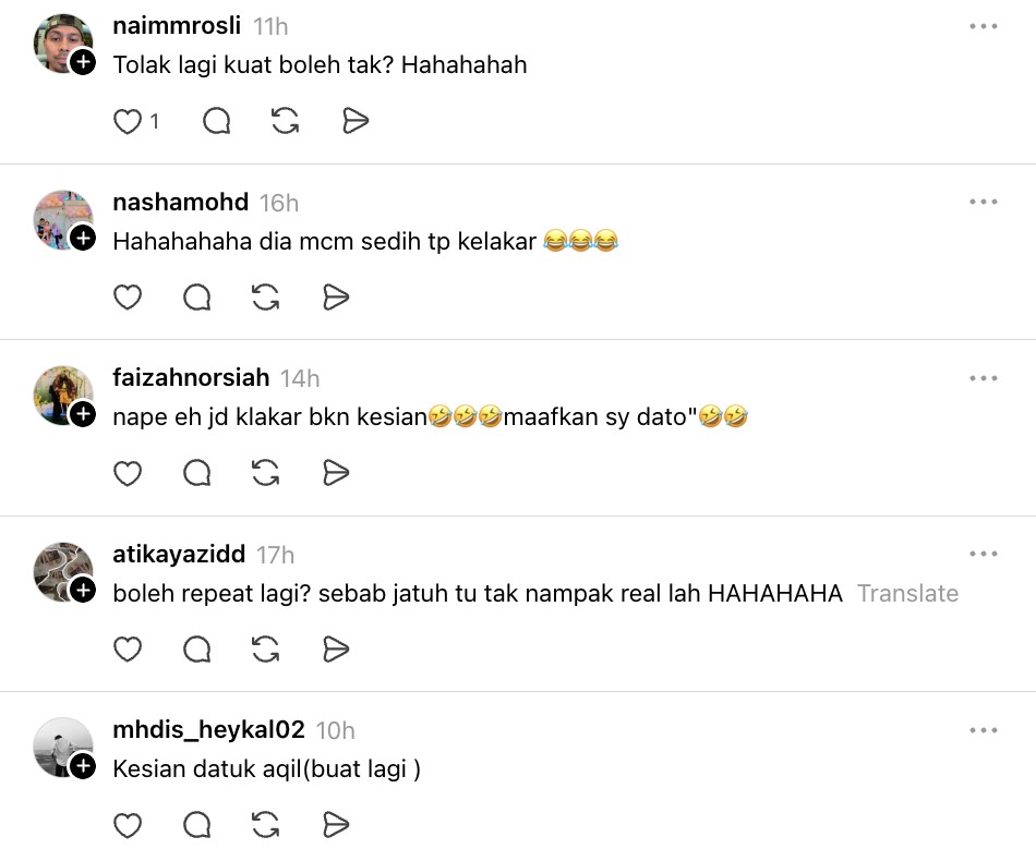 Menjengah ke ruangan komen, ramai yang meninggalkan maklum balas dengan berseloroh mengatakan tolakkan kepala tersebut terlihat seperti Aqil sudah lama berdendam dengan Aliff Syukri.