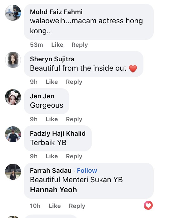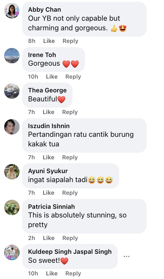 Ruangan komen di hantaran tersebut segera dibanjiri dengan pelbagai pujian dan reaksi teruja daripada pengguna media sosial yang terpukau dengan kecantikan menteri itu.