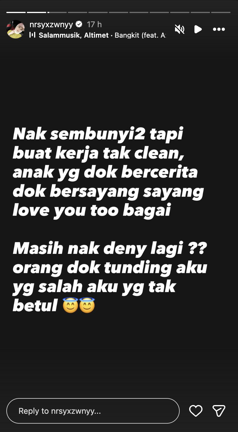 “Masih nak menafikan lagi? Orang tuding aku yang salah dan tak betul,”luahnya dengan nada kecewa.