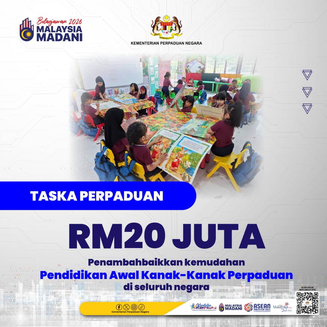 Penambahbaikan kemudahan pendidikan awal kanak-kanak perpaduan di seluruh negara diperuntukkan RM20 juta, manakala pembukaan Muzium Tekstil di Menara Merdeka 188 dijangka mengetengahkan warisan tekstil dunia Melayu.