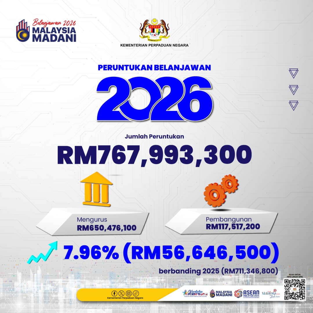 Menurut Aaron, melalui Belanjawan 2026 bertemakan Belanjawan Rakyat, KPN telah diberikan peruntukan sebanyak RM767,993,300, meningkat 7.96 peratus berbanding tahun 2025.