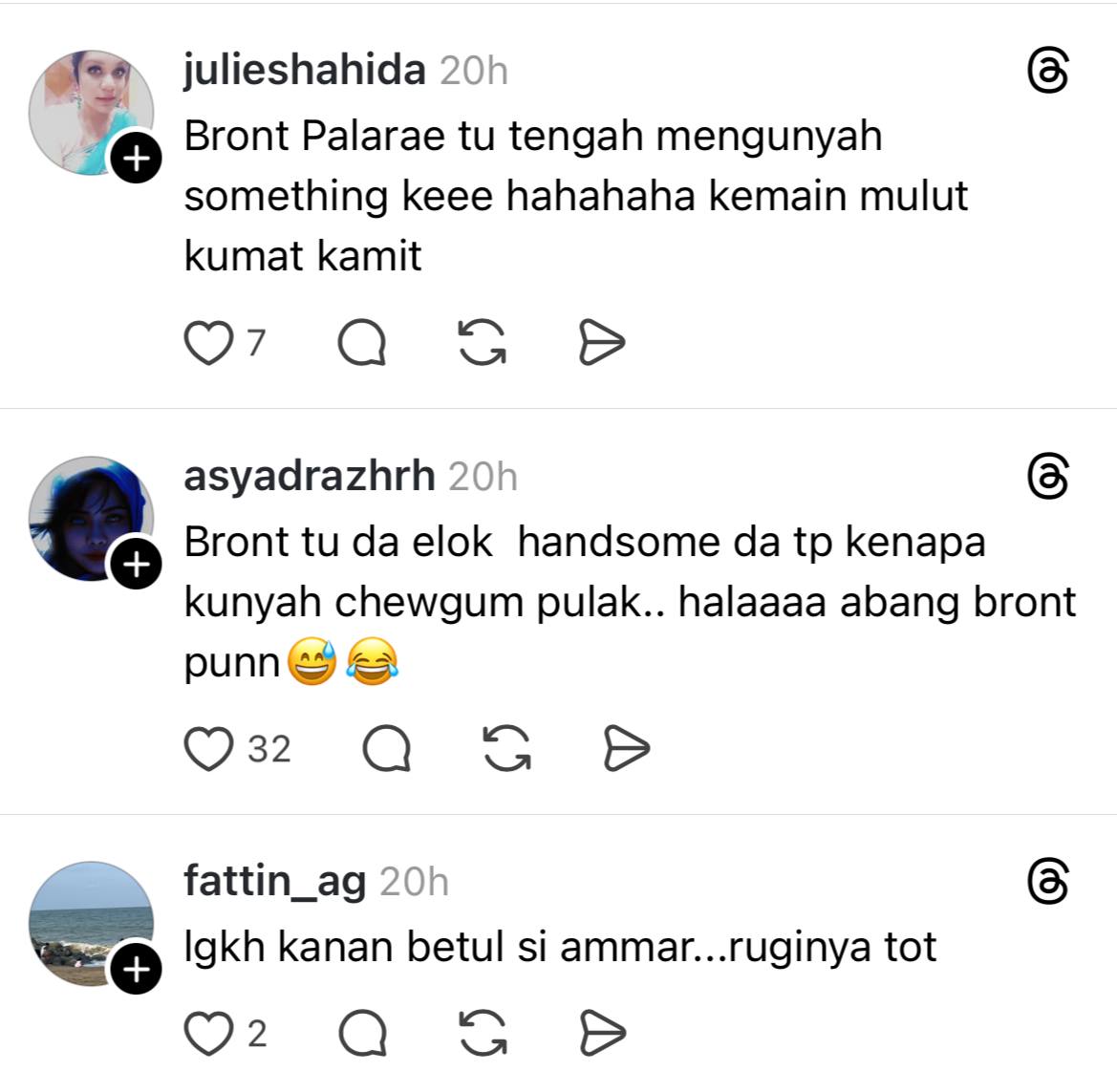 Malah ada juga yang cuba mempertahankan pelakon itu dengan menjelaskan ia adalah salah satu cara yang dilakukan oleh Bront bagi mengurangi rasa gemuruh apabila perlu tampil di depan khalayak ramai.
