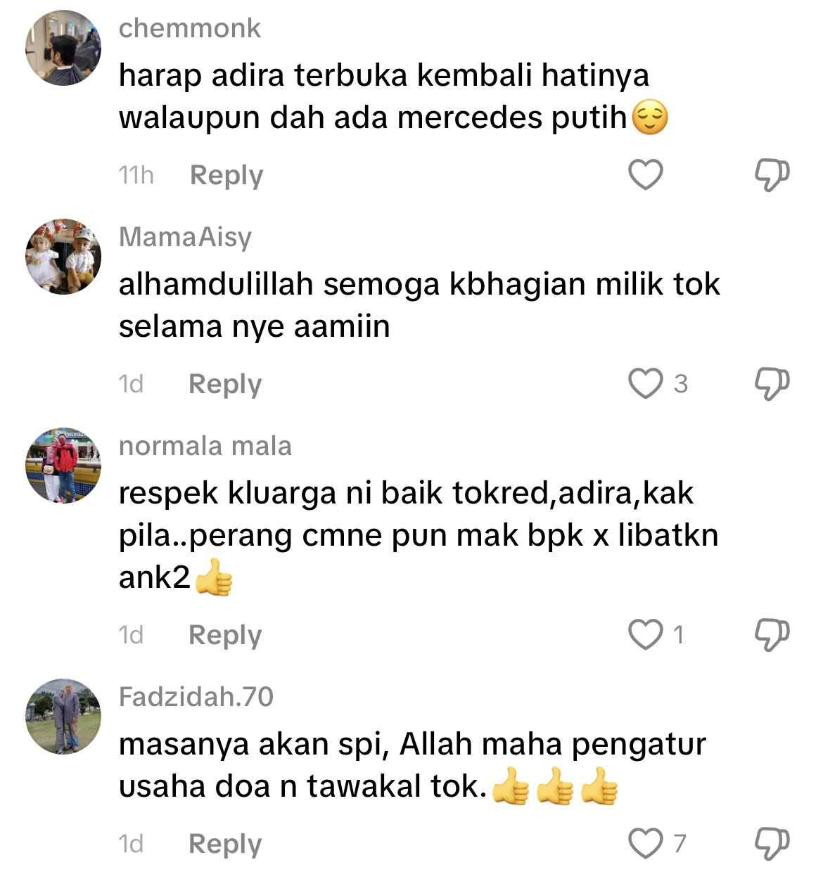 Malah ada juga yang mendoakan agar dia kembali rujuk bersama Adira sekiranya masih menyimpan perasaan sayang antara satu sama lain demi kebahagaian anak-anak.