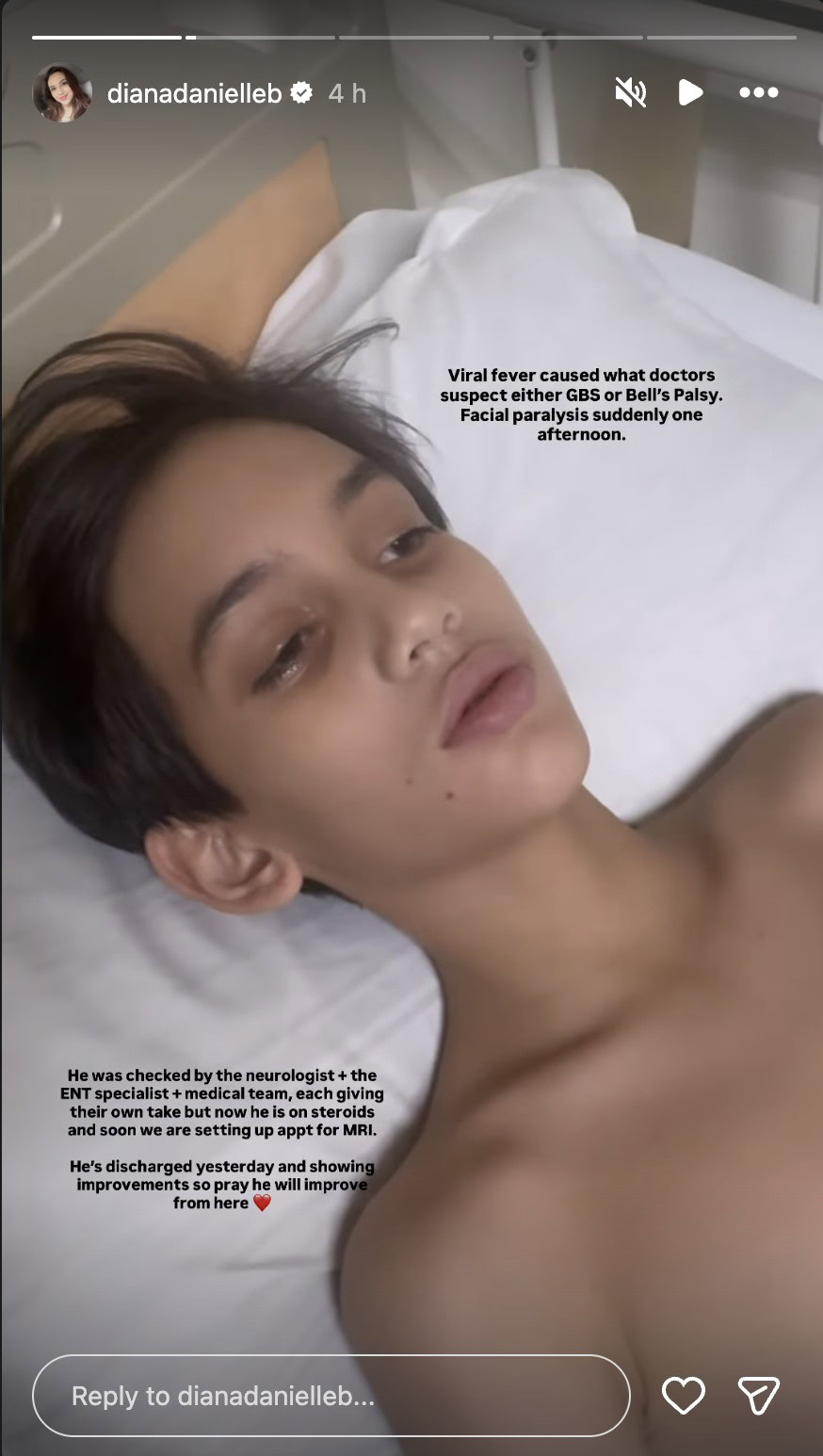 Anak sulung pelakon Diana Danielle dan Farid Kamil, Muhammad, 13, dilaporkan mengalami masalah saraf pada wajah yang dipercayai berpunca daripada gangguan Guillain-Barre Syndrome (GBS) atau Bell’s Palsy.