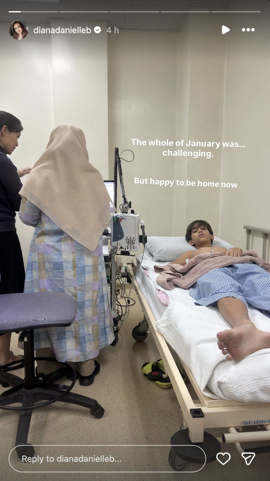 Dalam pada itu, Diana Danielle Danny Beeson meluahkan rasa syukur apabila Muhammad sudah dibenarkan pulang ke rumah.