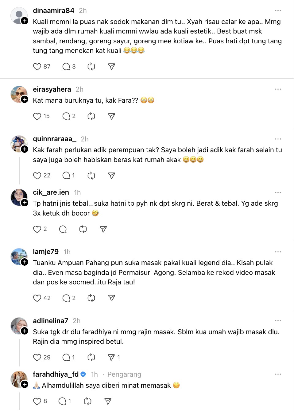 “Ada pula sindir, artis tapi pakai kuali buruk, tak ada duit ke nak beli kuali elok?” katanya dalam Threads.