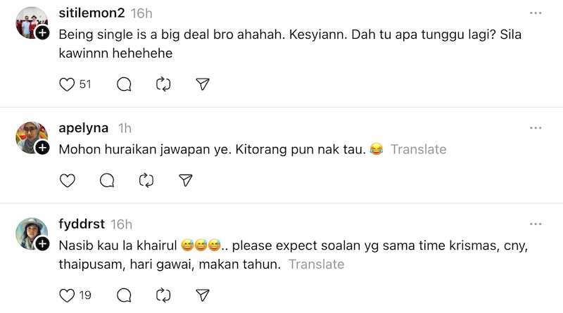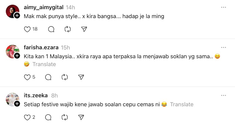 Menjengah ke ruangan komen, rata-rata netizen turut terhibur dengan perkongsian usahawan kelahiran Kelantan tersebut serta berpendapat soalan tentang kahwin sememangnya sudah sinonim dengan golongan ibu di negara ini yang sering menjadikannya topik wajib setiap kali bertemu anak muda, tidak kira musim perayaan apa sekalipun.