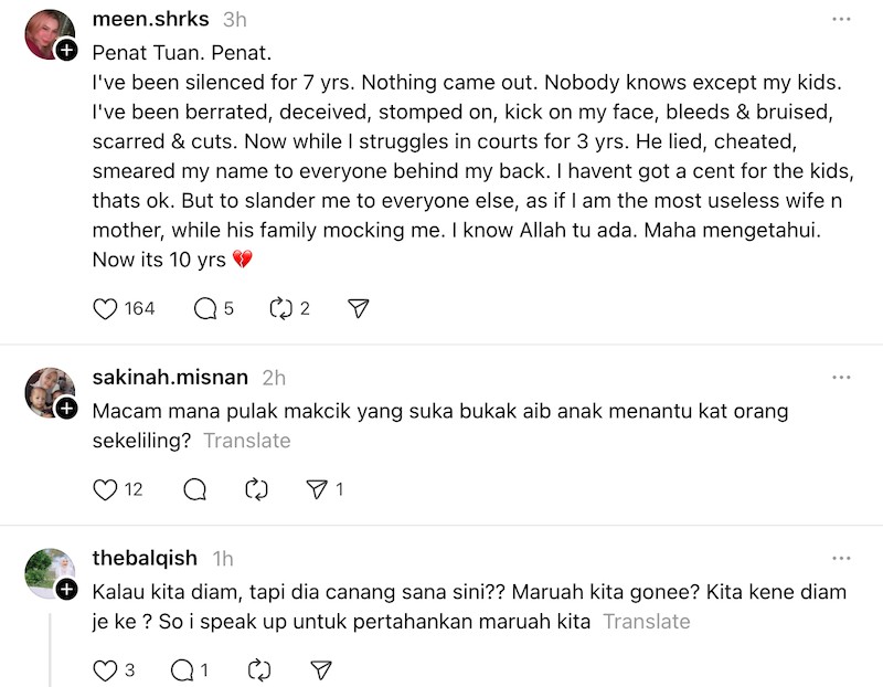Menerusi satu hantaran di platform Threads hari ini, beliau menegur kecenderungan segelintir individu yang mendedahkan masalah peribadi secara terbuka hingga menjejaskan maruah diri dan pasangan.