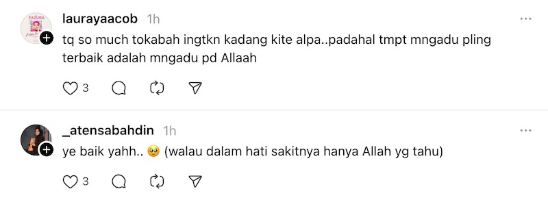 Menjengah ke ruangan komen, ada segelintir individu mengambil peluang tersebut dengan meluahkan ujian rumah tangga mereka bahkan, ada yang hilang sabar dengan sikap pasangan.