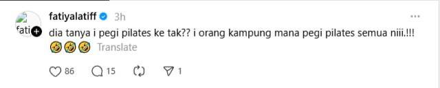 “Dia tanya saya pegi pilates ke tak? Saya ni orang kampung mana pergi pilates semua ni,” jelasnya.