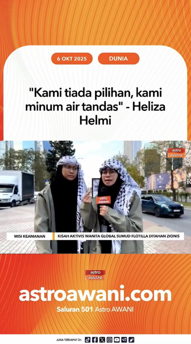 Penyanyi dan aktivis kemanusiaan, Heliza Helmi bersama adiknya, Hazwani Helmi atau The Helmis akhirnya berkongsi pengalaman penuh debar sebaik dibebaskan daripada tahanan tentera Israel selepas menyertai misi Global Sumud Flotilla (GSF) ke Gaza baru-baru ini.