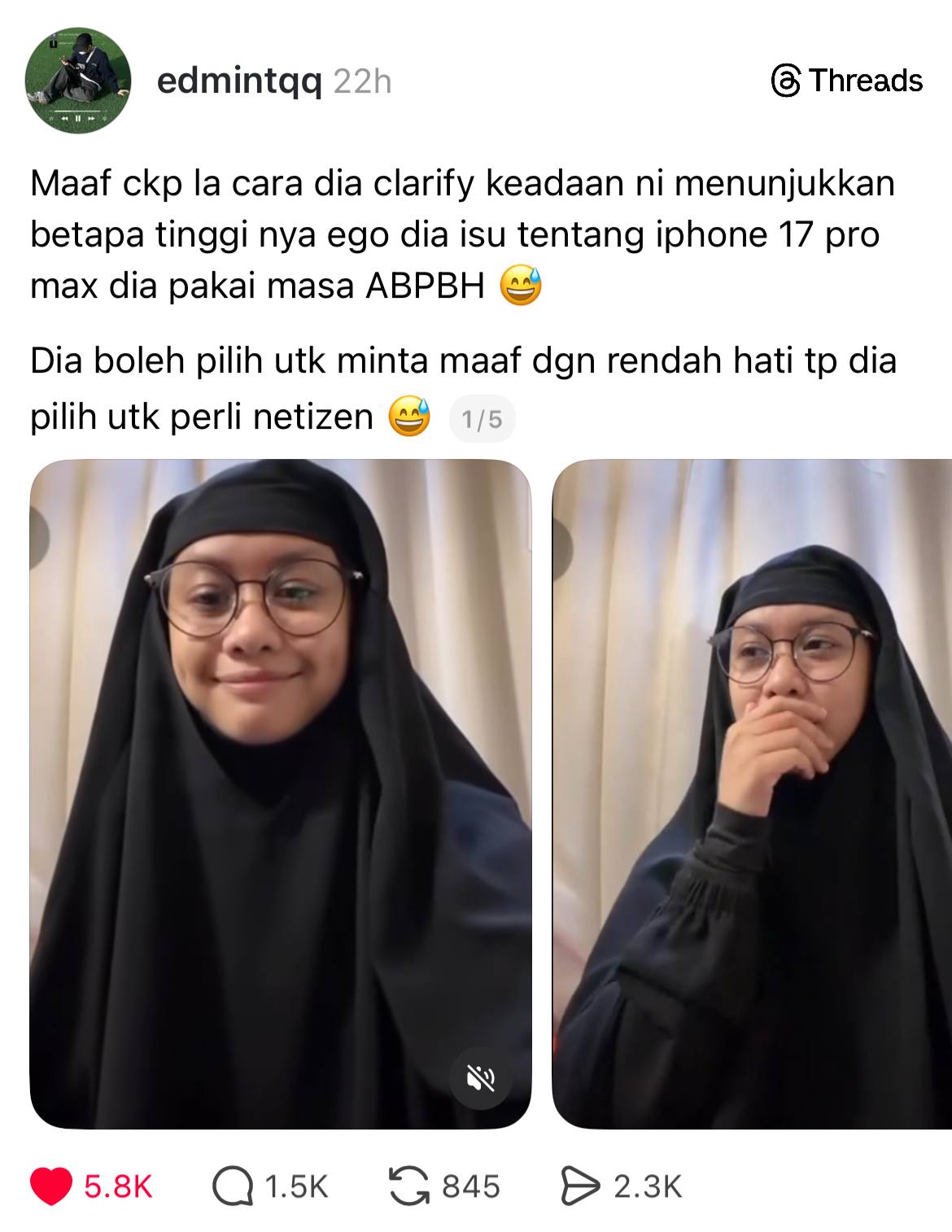 “Maaf cakap cara dia clarify keadaan ini menunjukkan betapa tingginya ego dia berhubung isu iPhone 17 pro max yang diguna semasa ABPBH.