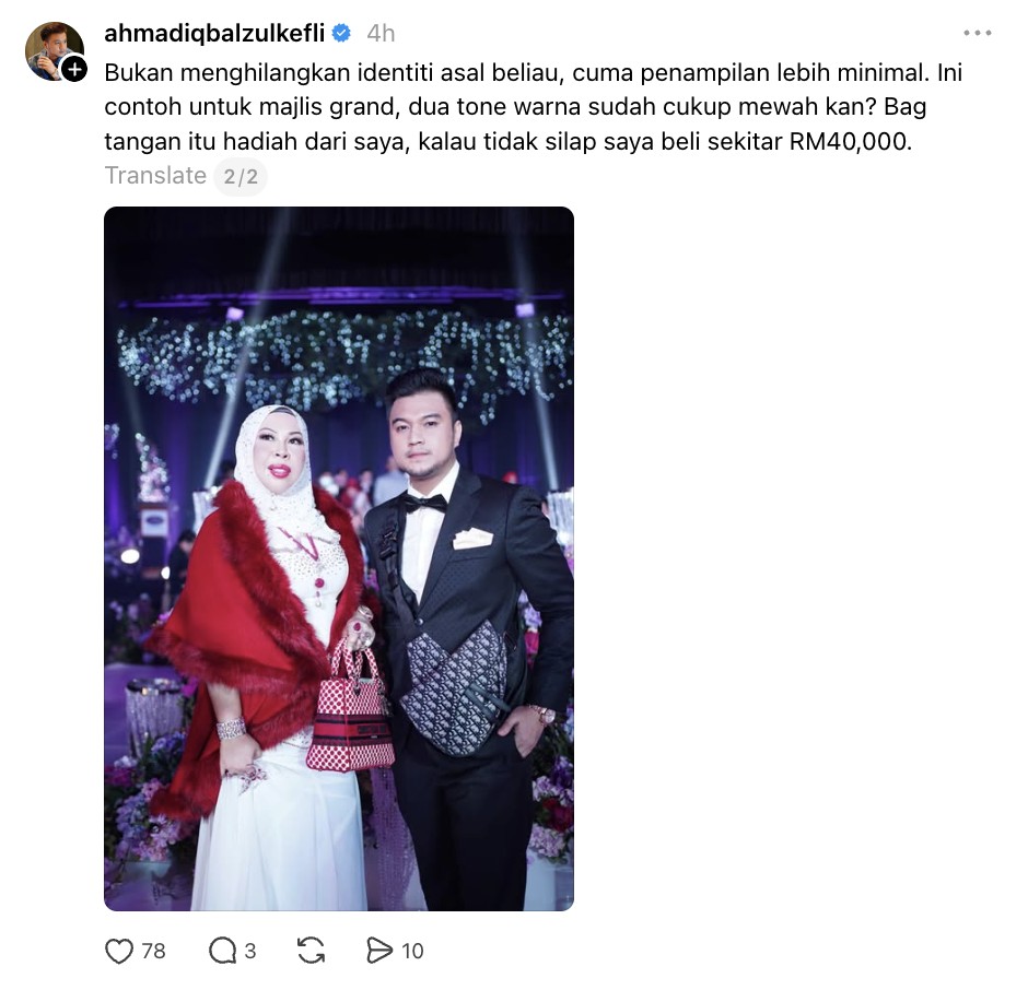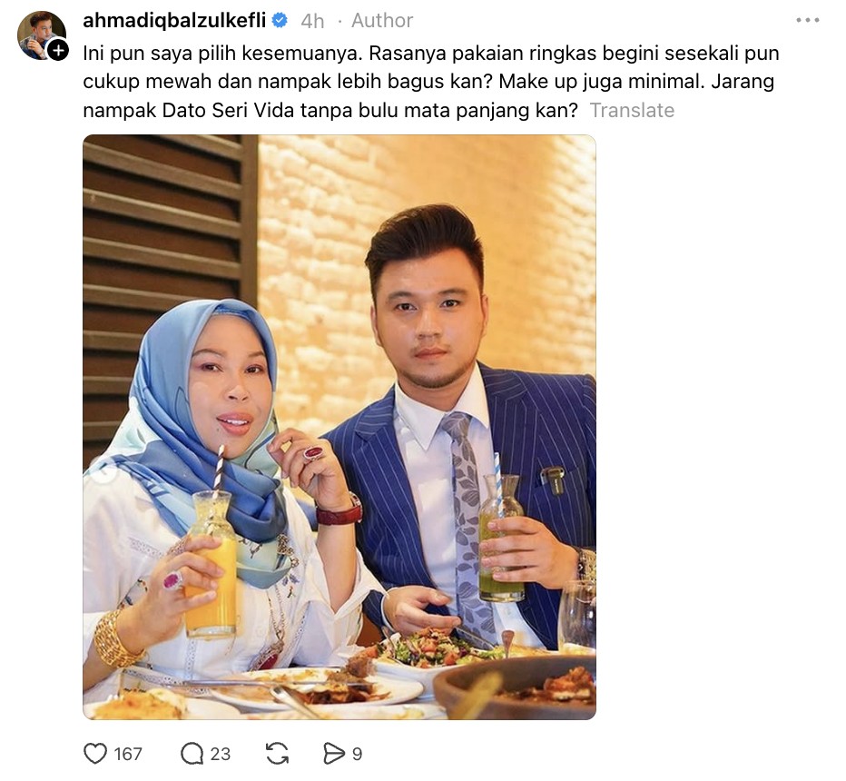 Perkara tersebut dinyatakan Iqbal menerusi hantaran di platform Thread apabila merasakan penampilan tersebut tidak sesuai untuk Vida.