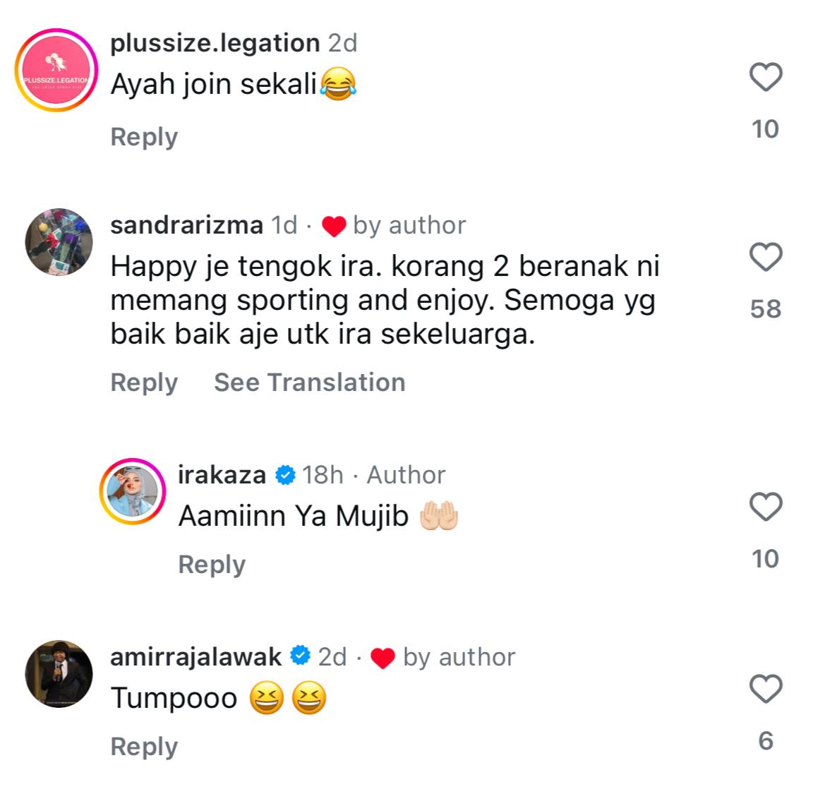“Terima kasih selalu melayan anak manja ayah ni,” tulis Ira, baru-baru ini.