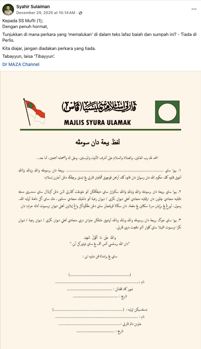 Isu lafaz baiah politik dibangkitkan Mufti Perlis