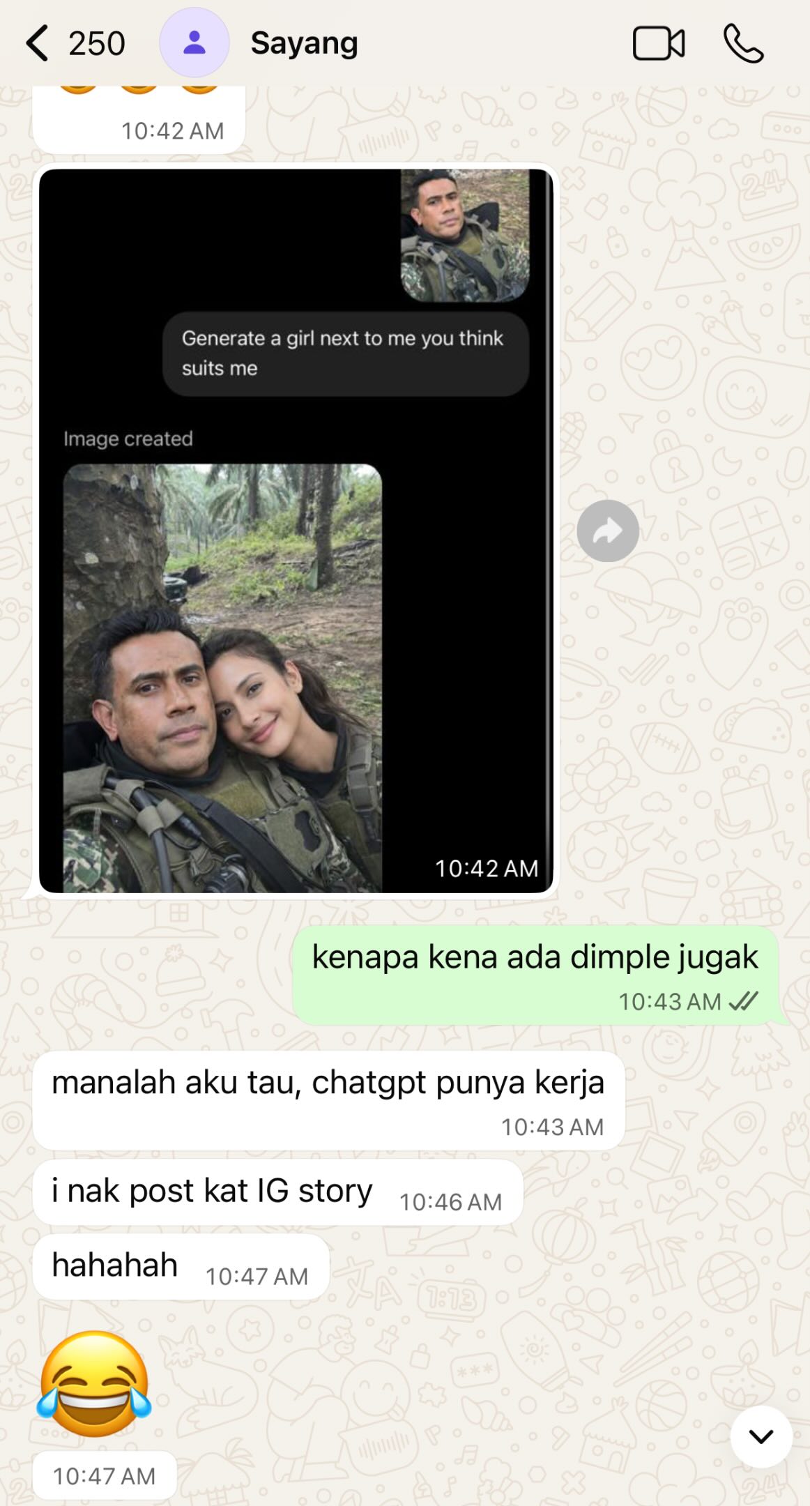 “Manalah aku tahu. ChatGPT punya kerja. Saya nak muat naik ke IG Story,” jawab Remy.