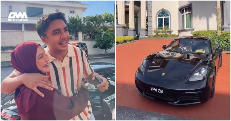 Usahawan terkenal, Datuk Seri Aliff Syukri dan Datin Seri Nur Shahida menghadiahkan sebuah kereta mewah Porsche kepada anak sulungnya, Ammar Ahyan.