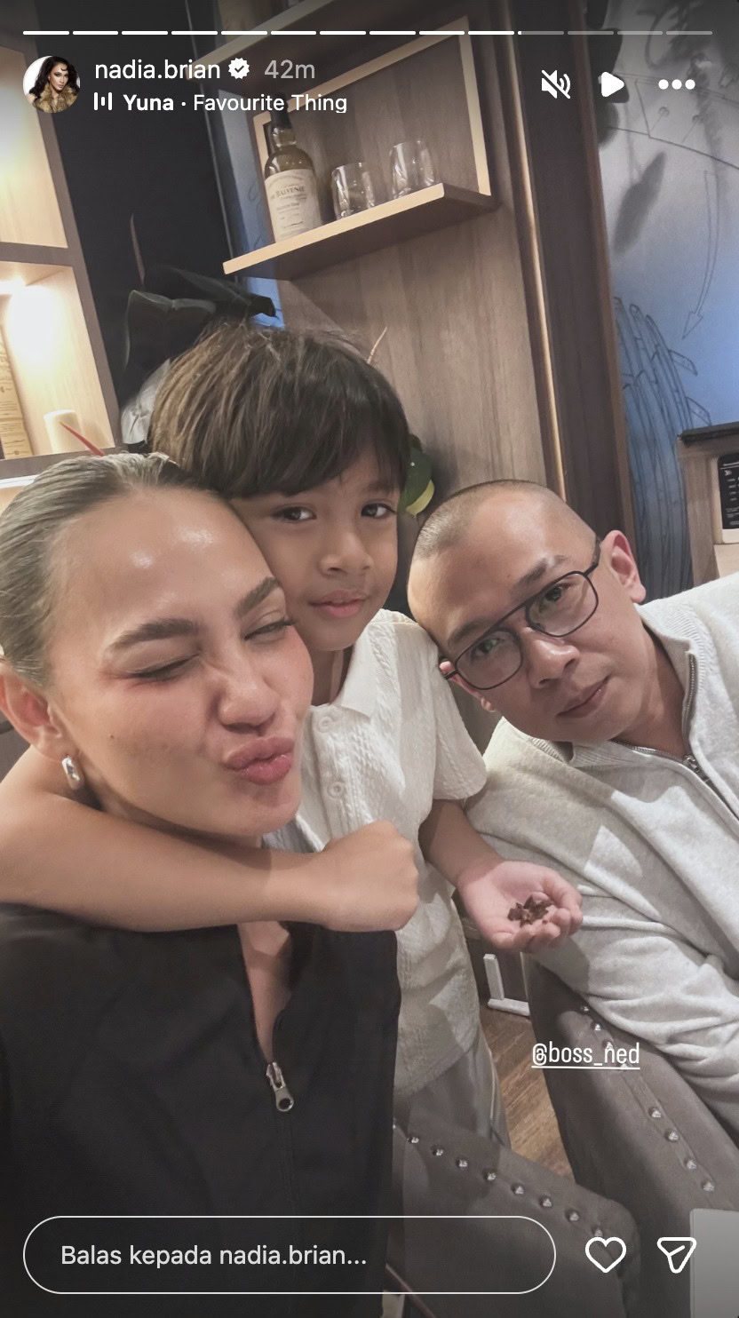 Selain bersama Nadia, Nedim turut berkongsi foto mereka bertiga bersama anak lelakinya, Mohamed Neqayl.