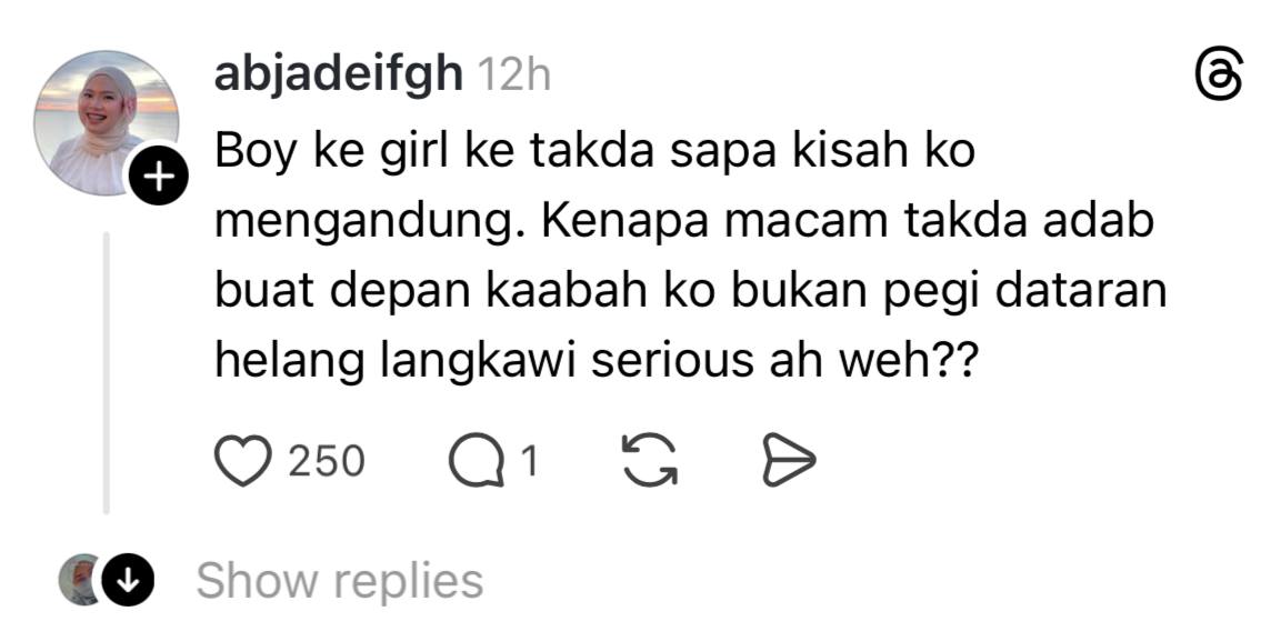 “Kau bukan pergi dataran helang Langkawi nak buat macam tu,” luah netizen lagi.