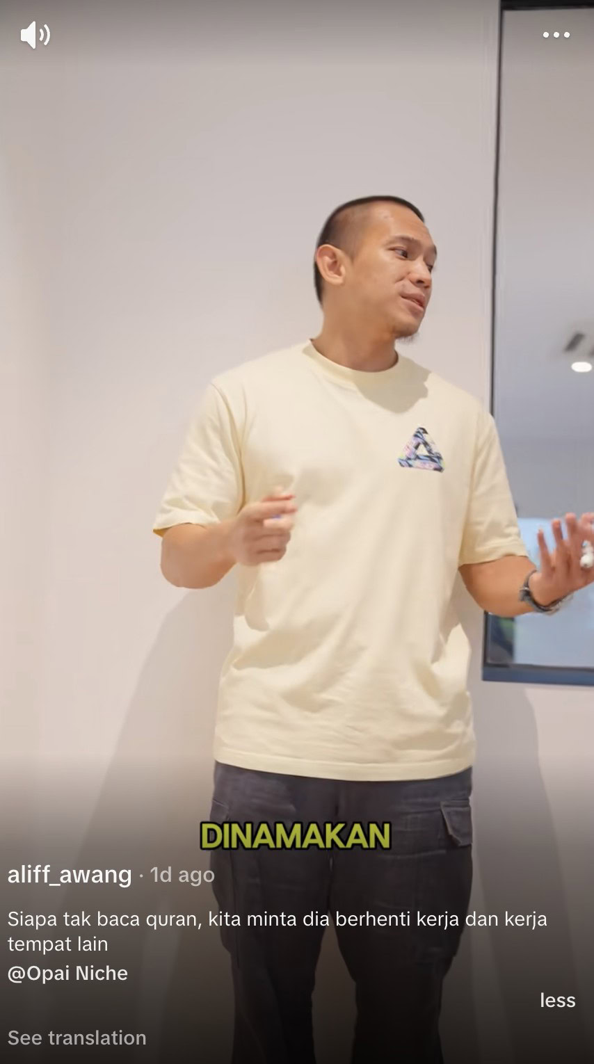 Usahawan dan pempengaruh media sosial, Aliff Awang atau lebih dikenali sebagai Opai, mengambil inisiatif menggalakkan pekerjanya mengimarahkan Ramadan dengan aktiviti tadarus al-Quran sepanjang bulan mulia ini.