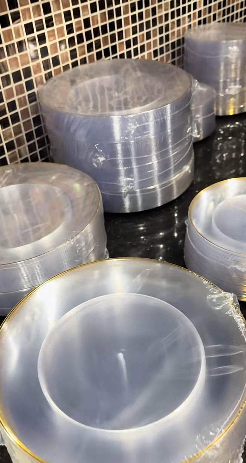 Usahawan itu turut menunjukkan beberapa barangan lain yang dibeli seperti mangkuk pakai buang yang lebih mewah dan cantik.