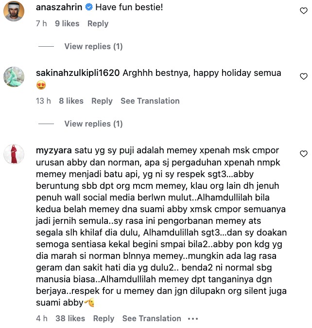 Mana tidaknya, percutian tersebut dilihat turut bersama Abby Abadi dan suami serta keluarga mereka walaupun baru-baru ini terjadi sedikit isu melibatkan selebriti terbabit serta bekas suami, Norman Hakim susulan pendedahan tentang ‘hutang’ mas kahwin yang didakwa baru dilunaskan walaupun sudah 20 tahun lebih.