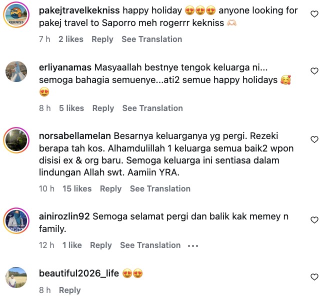 Perkongsian selebriti, Memey Suhaiza di media sosial berkenaan keluarga mereka yang sedang bersiap-siap untuk menuju ke Jepun bagi bercuti bersama telah menarik perhatian ramai apabila masing-masing memuji hubungan matang antara mereka.