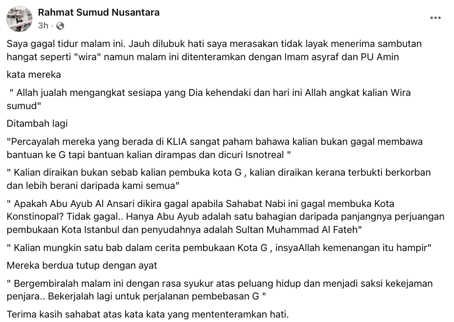 Sumber: Facebook Rahmat Sumud Nusantara
