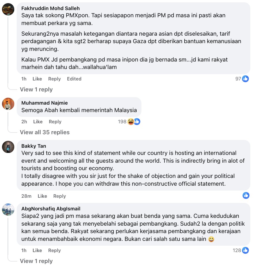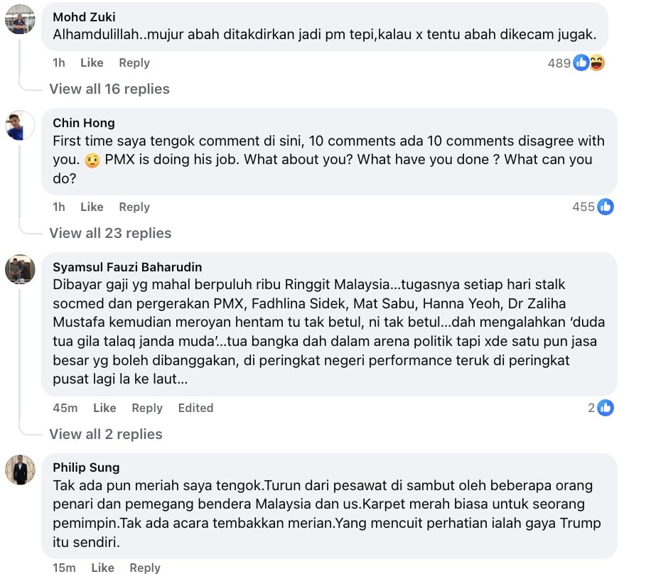 “Seperti yang saya telah peringatkan di Dewan Rakyat tempohari, tidak wajar Trump diberikan sambutan meriah di bumi Malaysia tatkala rakyat Palestin sedang bermandi darah dan mati kebuluran di bumi Gaza.”