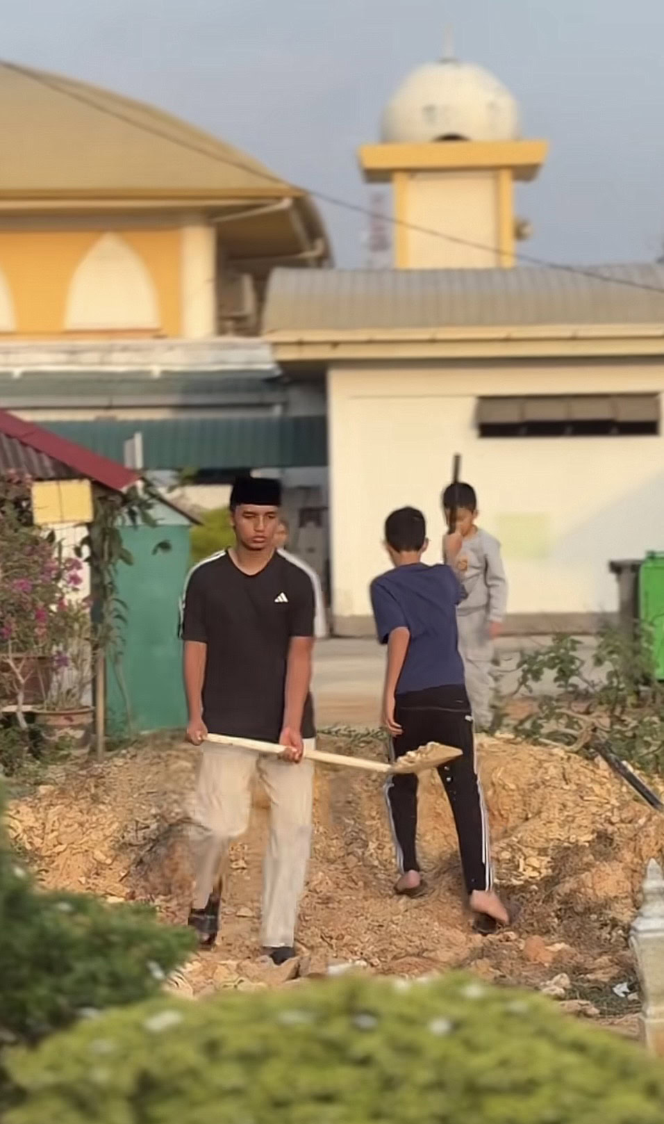 Ibu kepada enam cahaya mata itu juga dilihat menyuruh agar semua anak-anaknya bekerjasama membantu mengambil tanah bagi mempercepatkan lagi proses mengambus tanah kubur yang mendap.