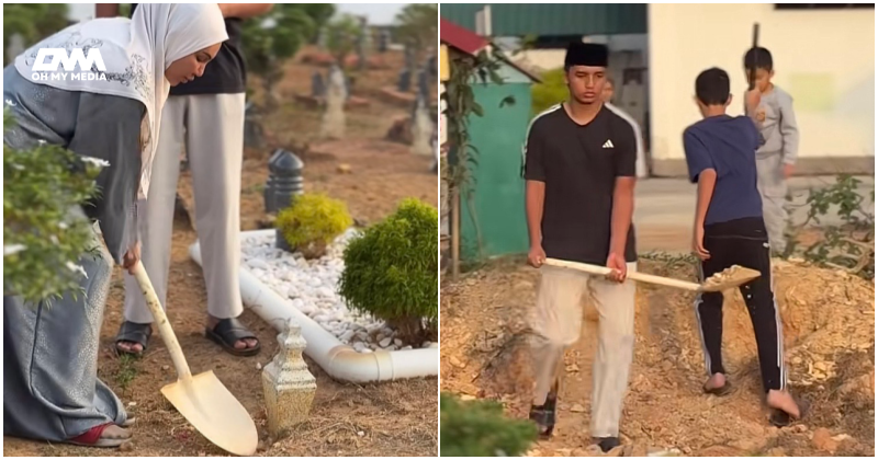 Bantu kambus kubur mendap, Shahida dipuji netizen pandai didik anak – “Contoh keluarga seimbang dunia, akhirat”