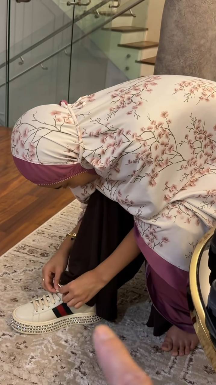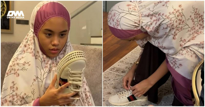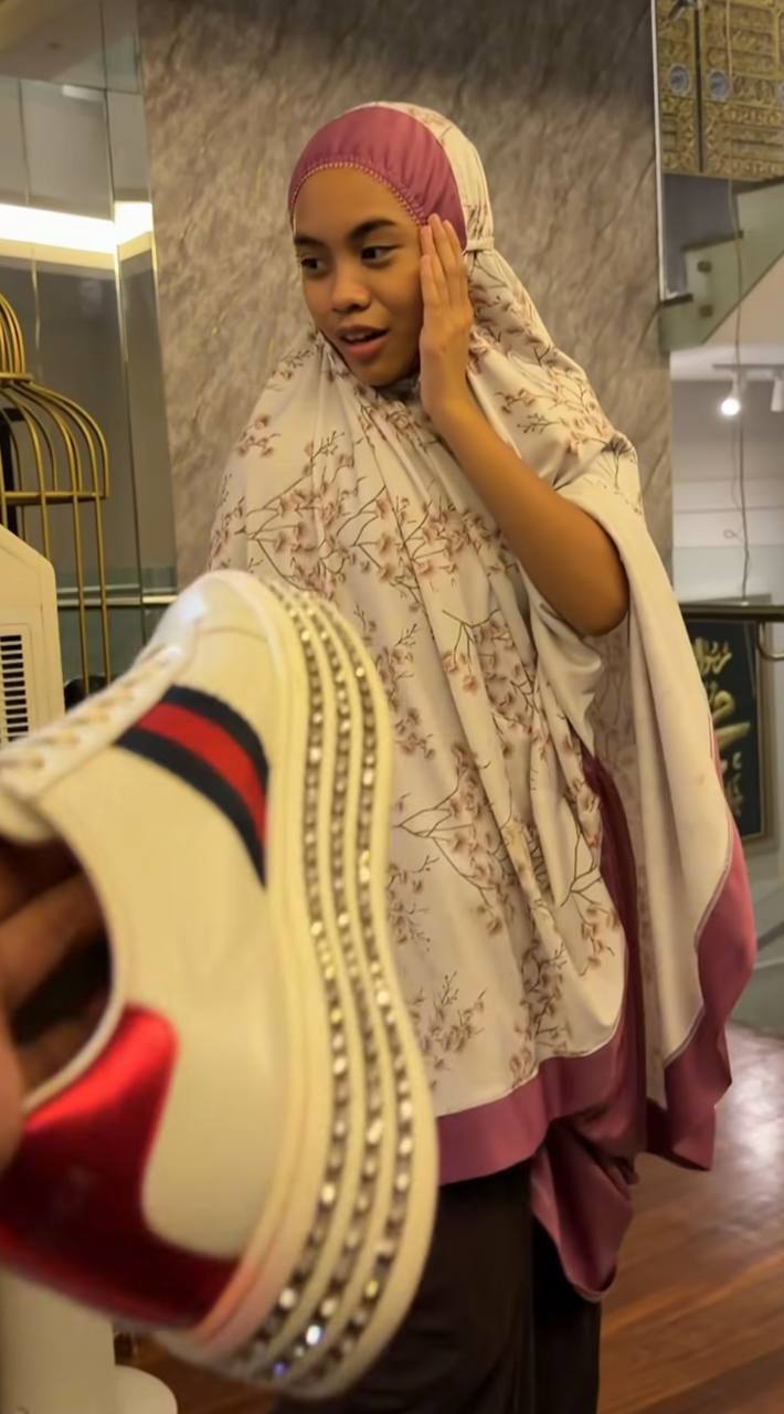 Menerusi perkongsian di Instagram, memperlihatkan Thalita yang baru sahaja menunaikan solat diminta untuk mencuba dua pasang kasut yang sudah lama tidak digunakan oleh arwah ibunya itu.