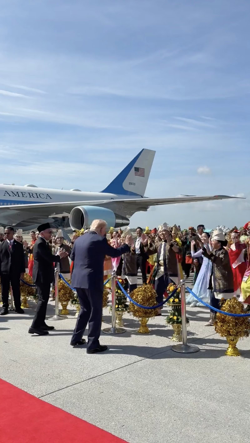 Memetik laporan daripada Harian Metro, Trump yang baru tiba menaiki pesawat rasmi Air Force One berwarna biru putih, Boeing 747-200B, disambut mesra oleh Perdana Menteri, Datuk Seri Anwar Ibrahim, diiringi persembahan kebudayaan sebagai tanda alu-aluan.