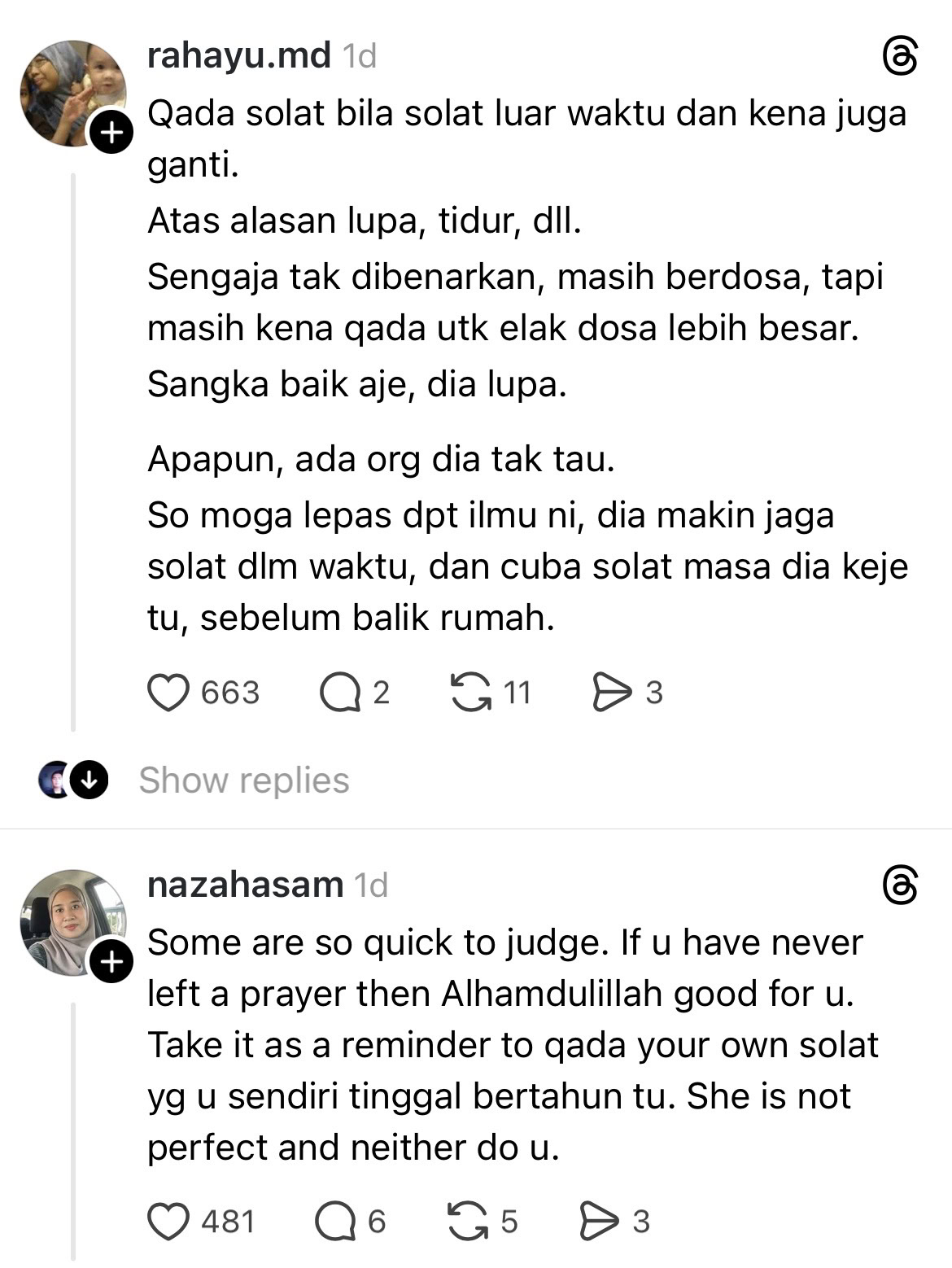 Rata-rata warganet meninggalkan pesanan agar solat fardhu tidak ditinggalkan tanpa sebab yang dibenarkan.